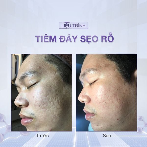 Liệu trình trị sẹo rỗ (sẹo đáy tròn, vuông, nhọn). Làm đầy nhanh các đáy sẹo, nếu tuân thủ đúng liệu trình sẽ đạt làn da mịn, đỡ sẹo đến 90%. Không có hiện tượng tái sẹo.